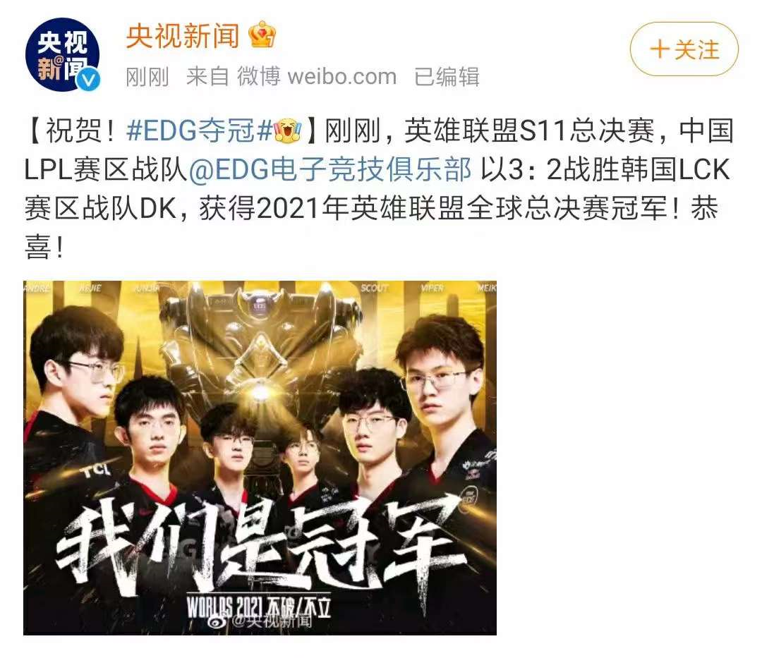 热搜第一!昨晚刷爆朋友圈的EDG,是何来历?
