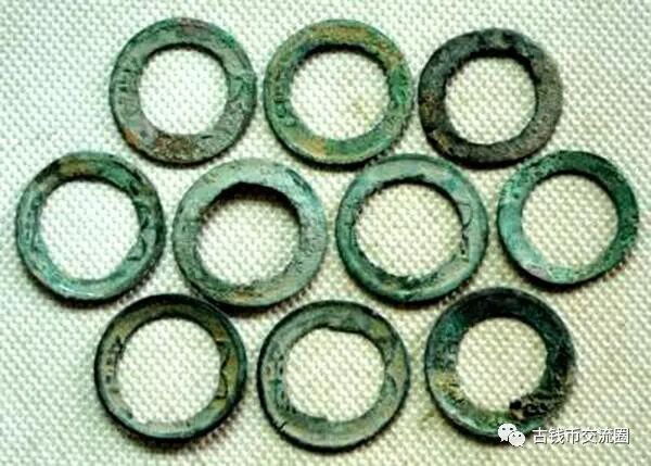 特征:凿其中(取铜)而仅剩边缘,成环状