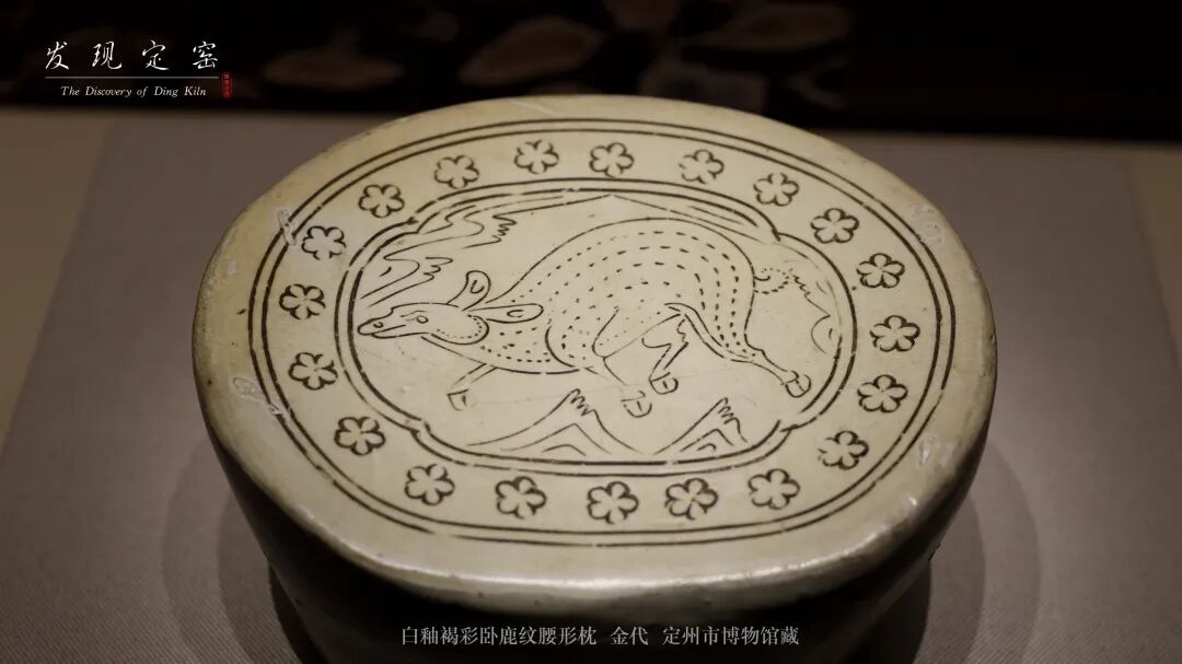 定窑瓷枕上还多见各样纹饰,例如:狮子纹、水波纹、鹿纹、海棠纹和折枝花纹等,多用来传递吉祥的寓意。除了消夏安寝的作用外,瓷枕还具有镇宅祈福之功。