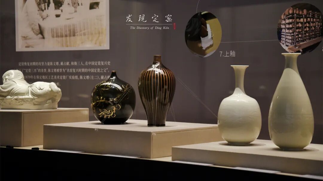 第六章节“千年之约”,定窑自殁于元代战火之后,沉寂了数百载。新中国成立后,定瓷烧制工艺重新进入人们的视野。现场展示了几件定窑工艺大师们的作品,大家可以跟展厅的其他文物进行对比。![]()