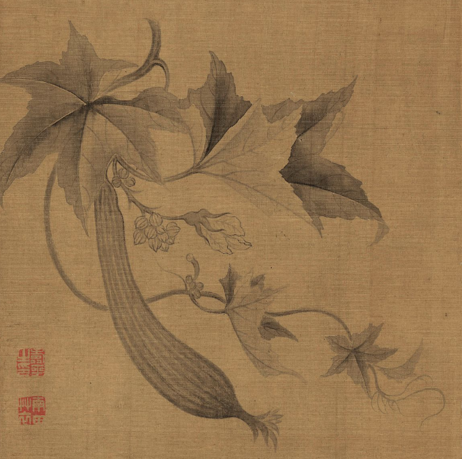 元 钱选(传)花鸟草虫图 局部 弗利尔美术馆藏