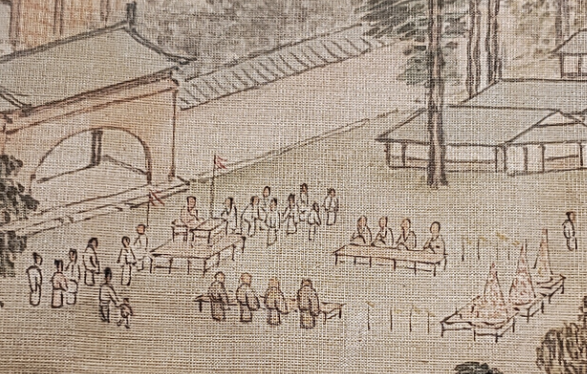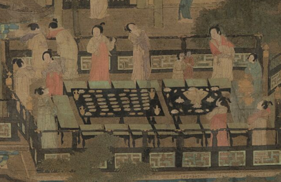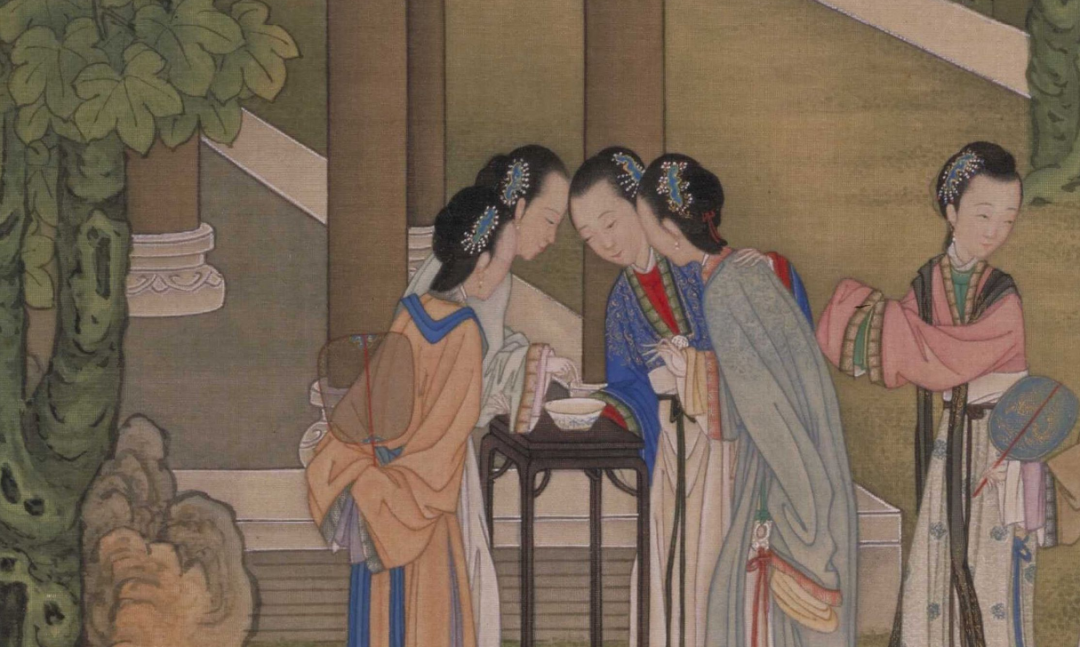 清 佚名 雍正十二月行乐图轴之七月乞巧 局部