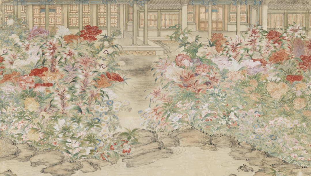 创作了一幅台阁花园的图景