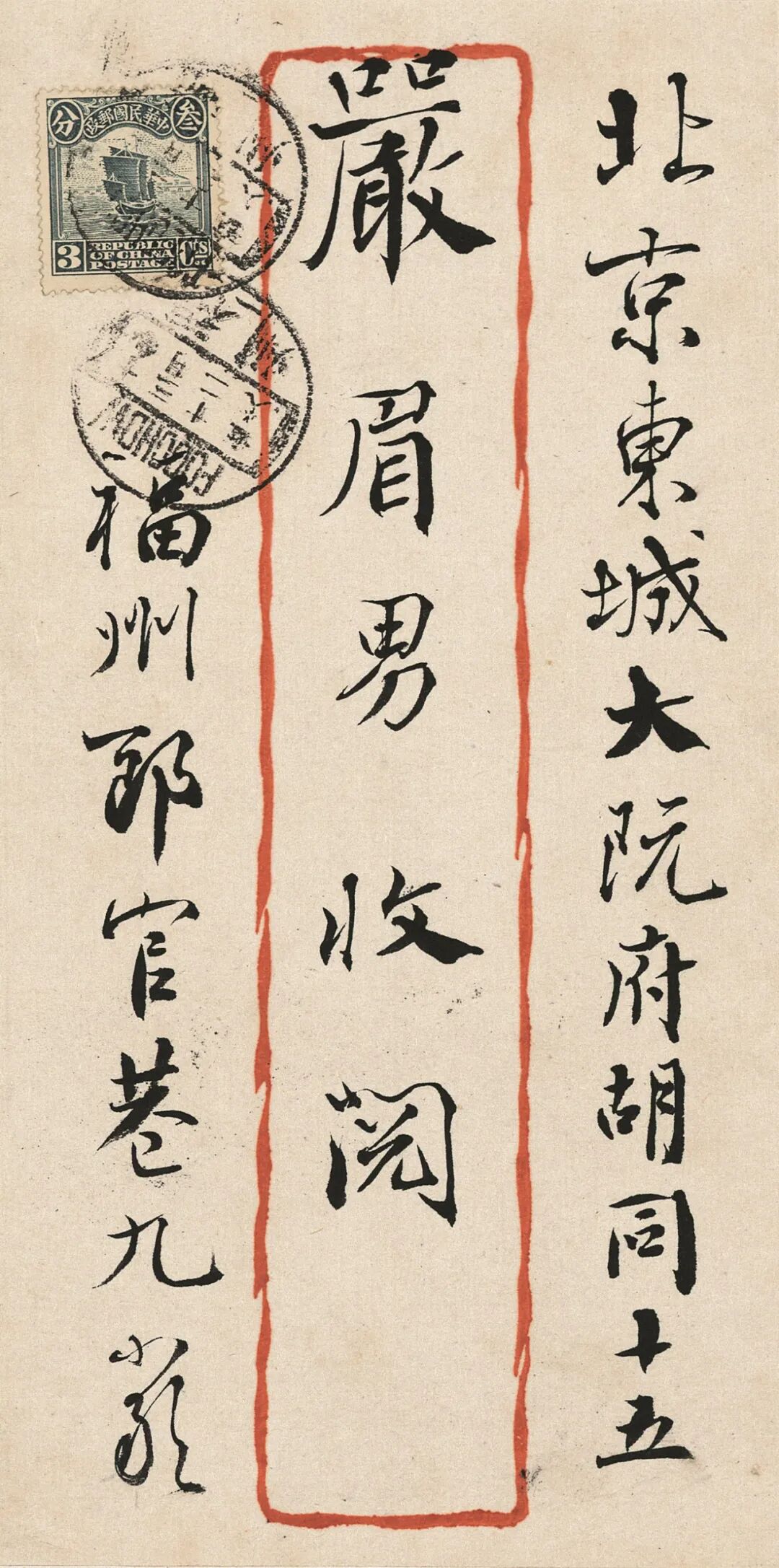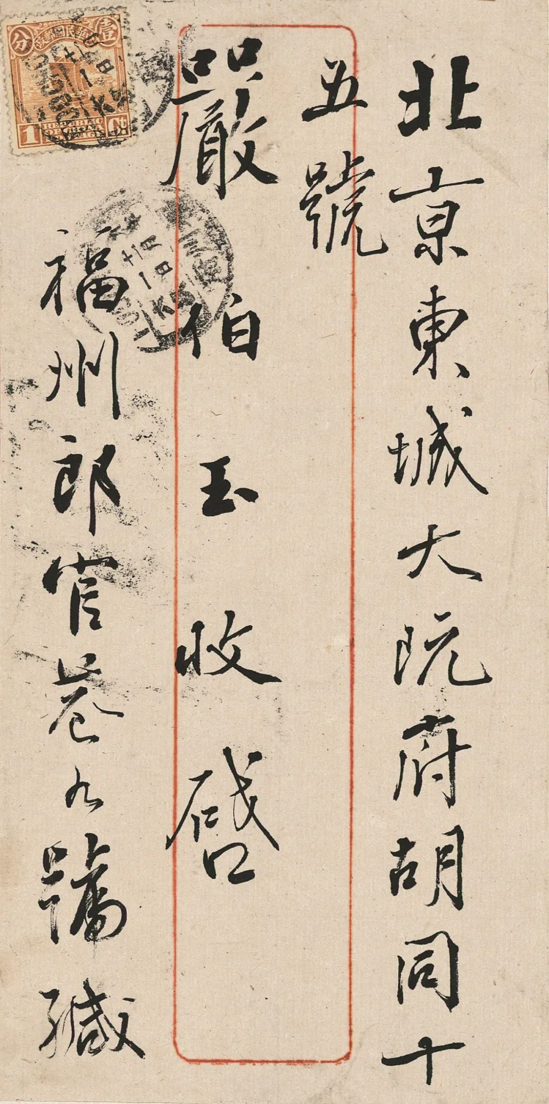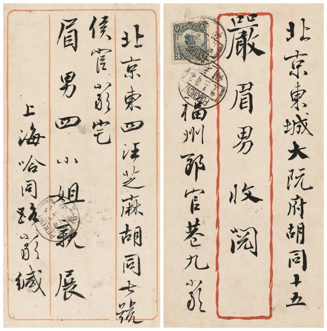 信件作于1919年9月25日。其时严复生活于福州,正预备北上。其中所述“廿日信接到了”,落款“八月初二日泐”,与严复1919年9月24日日记载“顼廿日信(次日覆)”相合,见《严复集》。