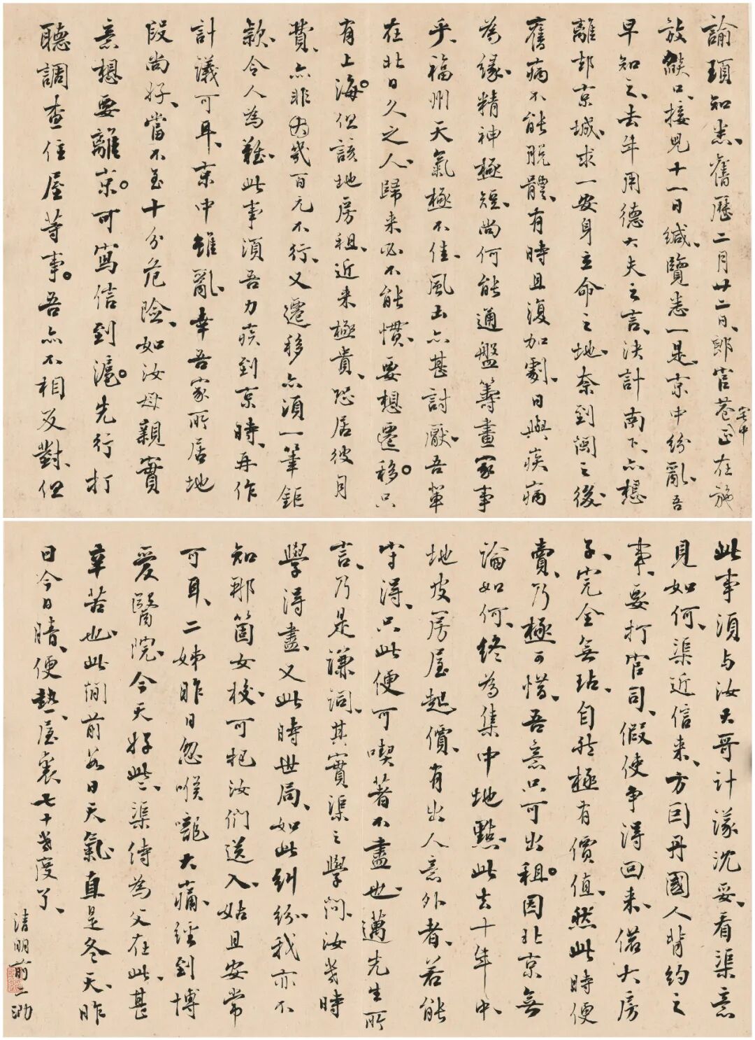 此为严复晚年有关个人归宿的家书,并谈及北京时局、京沪房价、福州风土、子女教育等。作于1921年清明前二日,即4月3日。