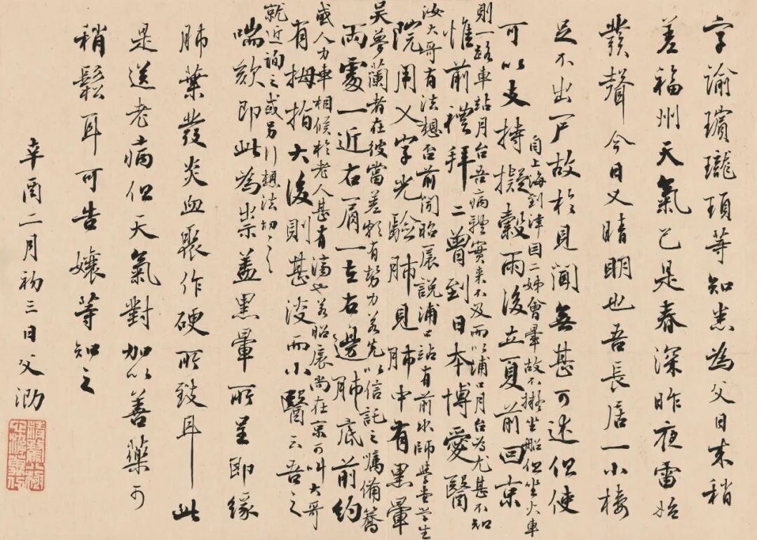 抵达福州后的第二封家书长信,内容提及自己病情、福州天气、子女教育、长孙严侨等事。