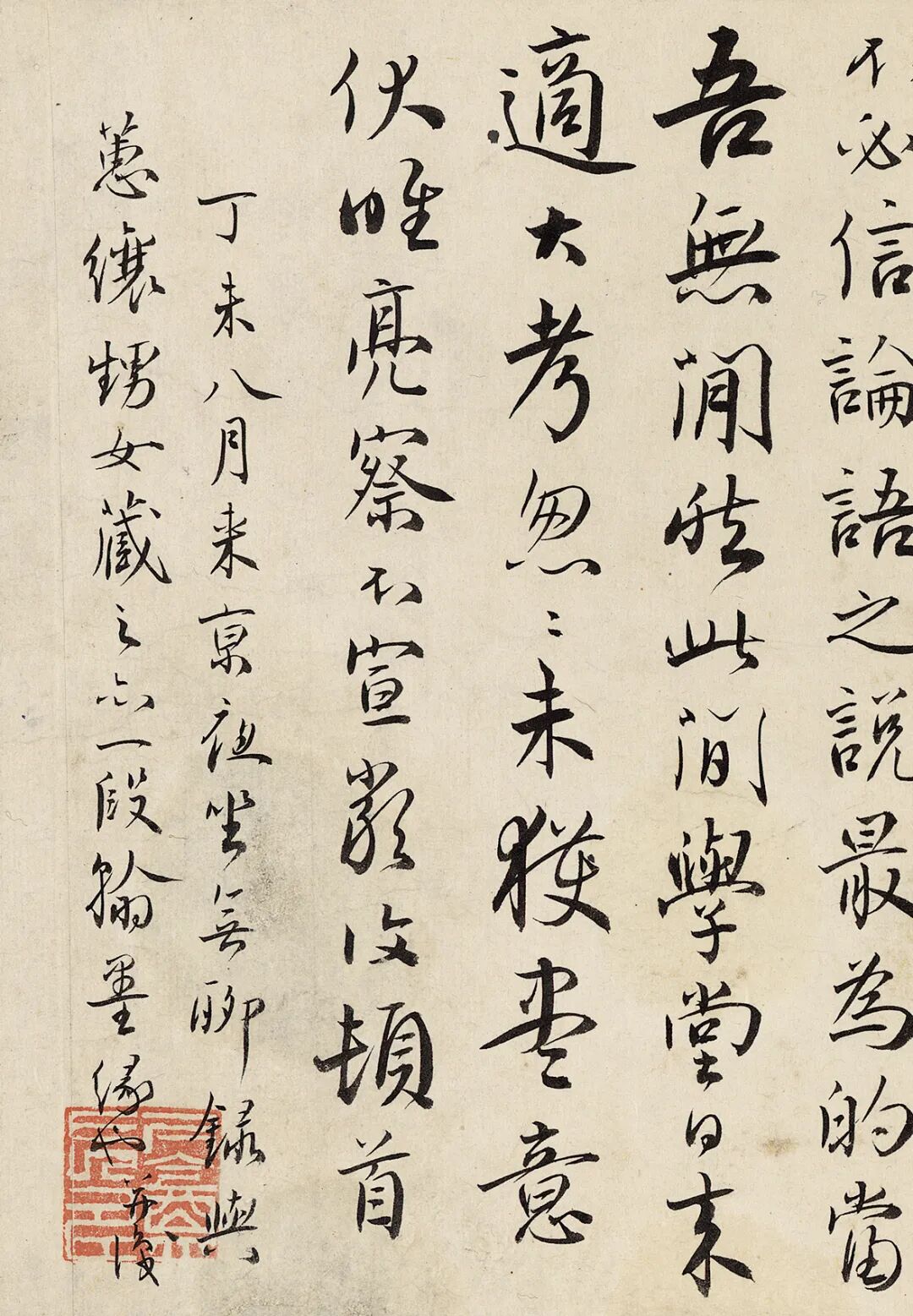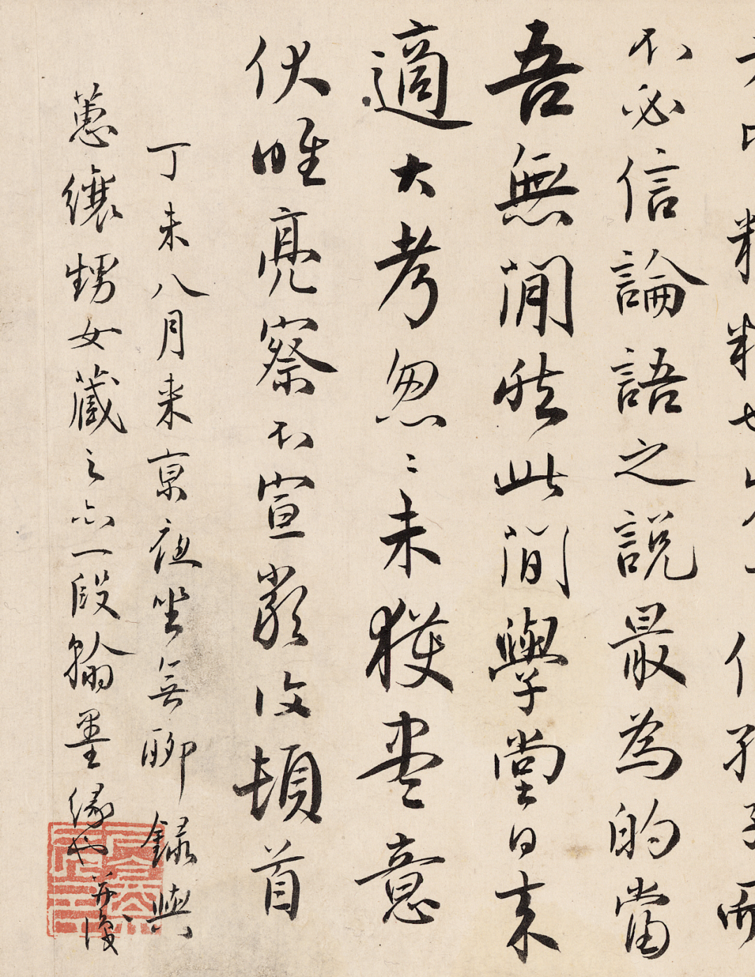 此为严复书旧作《与盐山贾佩卿论学书》卷,有本款及钤印,完整阐述严复对孔子、孔教、《论语》、儒学根本大意以及中西学术差异的理解,富学术价值。
