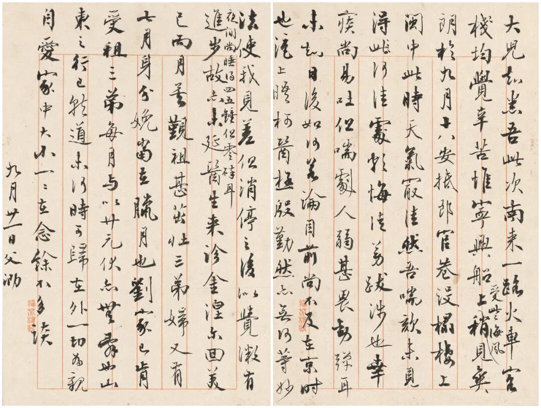此为严复晚年在故乡福州所作家书,谈到张元济(菊生)、看西医治牙及赴京行程等,作于1919年9月22日,即严复日记9月22日中“与琥信、顼信”。