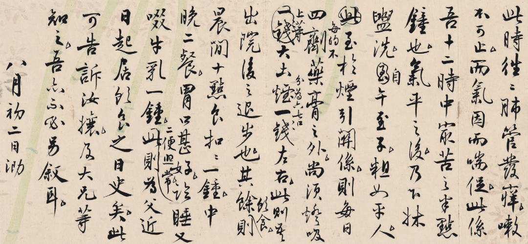 此为严复自述“近日起居饮食之日史”等晚景的长篇家书,兼及镶牙、烟瘾、咳喘等健康状况,对了解严复晚年生活状况有重要文献价值。