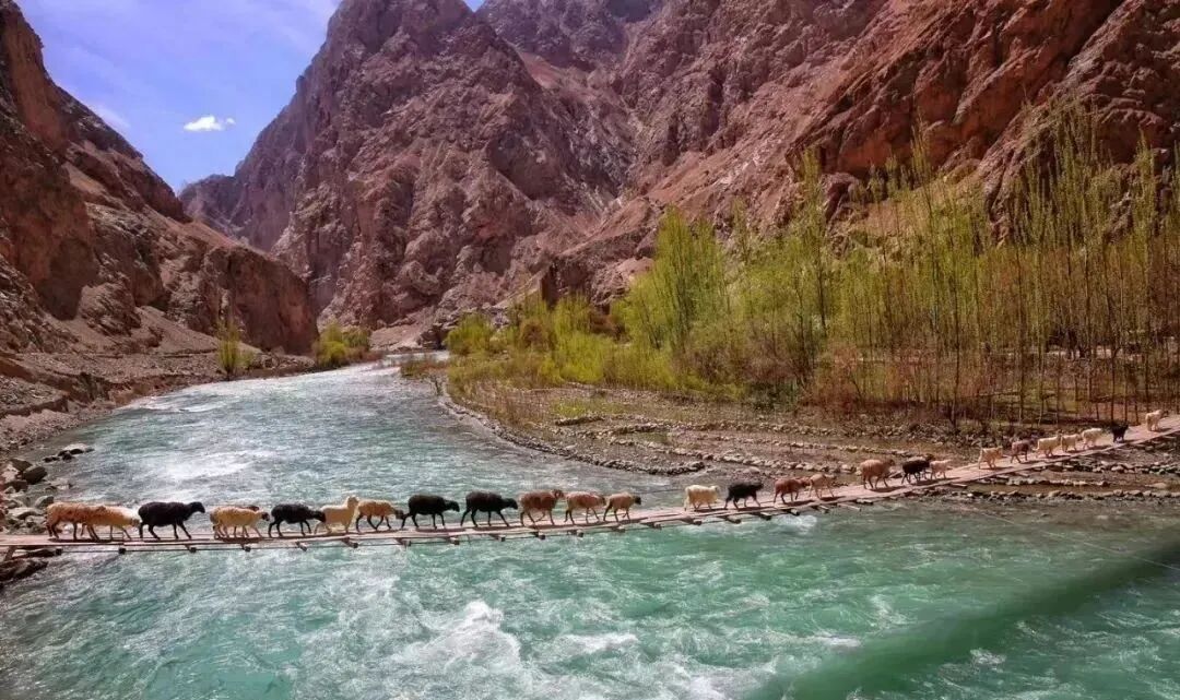 塔莎古道,贯穿塔什库尔干县到莎车县,是至今都很少人敢走的南疆密境。当年玄奘法师从印度东归,就是沿着这片神奇的山脉谷地前行。玄奘法师曾这样描述这条古道:“东下葱岭东冈,登危岭越洞谷;溪径险阻风雪相继,行八百余里出葱岭至乌铩国。”塔莎古道被誉为世外桃源,既有人间仙境,又有荒无人烟。真的是“身体下地狱,眼睛上天堂”。