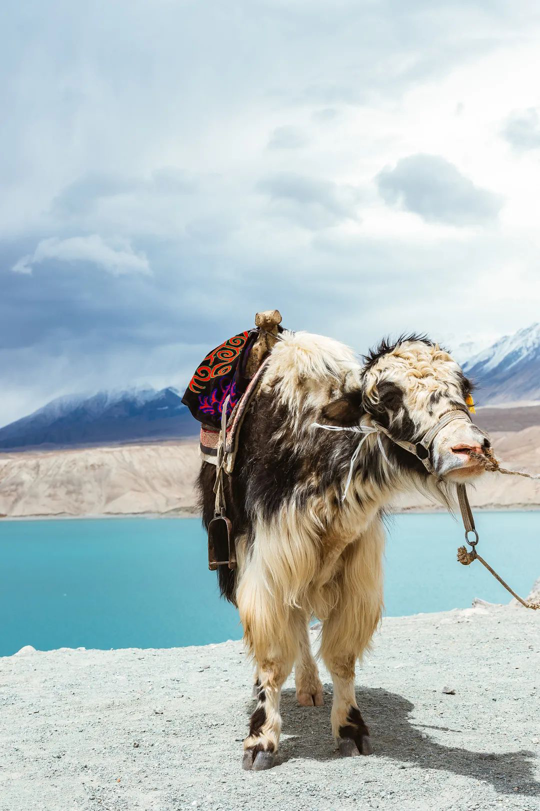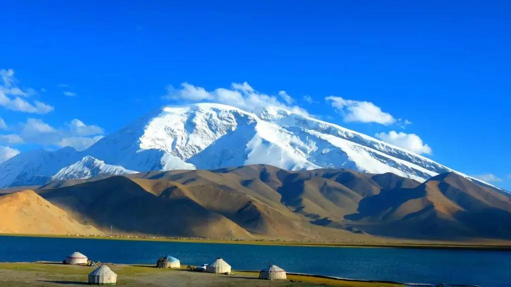 卡拉库里湖,坐落在慕士塔格雪峰的脚下。“白衣大士”般的慕士塔格海跋7649米(一说7509米),卡拉库里湖海跋3600米。这个帕米尔高原上高海跋的湖泊,面积是天山天池的两倍。湖的南面是一片草原,一到夏季来临,这里水清草丰,湖光山色,碧绿的草地上一顶顶白毡房星罗棋布与澄澈的湖水中皎洁的冰山倒影相辉映。
