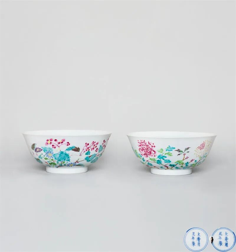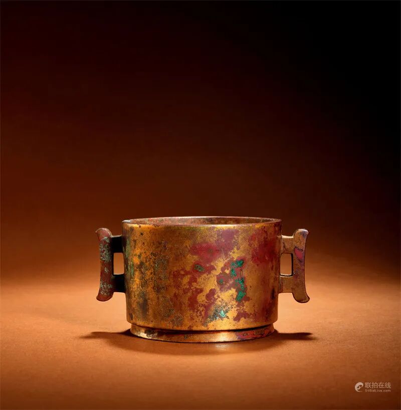 尺寸:顶部直径17.8cm;高7.6cm;底部直径8cm *2拍品估价:600,000 - 1,200,000 人民币碗式圆广口外撇,深弧腹,圈足,足内书“大清雍正年制”青花楷款。此碗制坯匀薄,土脉细坚,叩之有振玉之声。其外壁粉彩设色,绘画秋卉蛱蝶,其通景构图,环展若手卷小品,所画白菊、秋海棠等花卉,用色鲜嫩,彩质细纯润厚,诸饰全无勾线,纯用没骨技法,染绘而出。可见花叶宽展,菊花硕大,花瓣细锐细密,翠叶染映左右,后设蛱蝶飞舞。本品制器精工,设色娇鲜润丽,秋卉葱茜,清香袭人,其中尤以海棠、花茎等,用郁丽胭脂彩料绘画,莹莹凸起,最为夺目。尺寸:口径12.4cm;高7.5cm;重1039g拍品估价:500,000 - 800,000 人民币参阅:王世襄著,《自珍集》,生活·读书·新知三联书店,2003年,页22,图2.9。斯炉形制极美,为明代典型之器物,文人气度尽显。炉身扁,薄唇外侈,上起双冲耳,薄俏直立,势外倾,中间厚,两端薄,耳洞腰圆,浑如卧卵,且较为开阔。凹颈,扁鼓腹下垂。三个倒三角形乳足分布于炉底,足尖着地面积极小,鲜活似妙龄,是为时代之特征。器壁厚度由口沿至底渐厚,重量集中于器物下半部,压手感强,是为晚明所流行铸炉工艺特征。整体皮色经数百年之烧炼,精铜之变幻,四色沉冶,密融如膏,成就为熟栗皮色为基调,闪耀红霞之光芒,如幻如蕴,莹润如釉,绵滑似缎,可谓佳境,为民间藏炉中少见精良巨制。