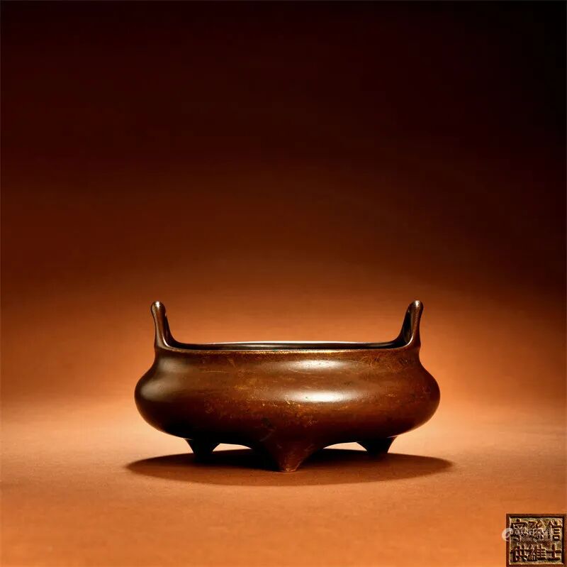 尺寸:口径9.1cm;高6.2cm;重 1150g拍品估价:800,000 - 1,200,000 人民币此炉之身,堪为经典,其戟形方圆,精巧灵动,清逸超然物象之神韵也。平口圆敞,渐下渐收,似收却沉实,似窄却蕴阔,簋足撇出,如飞檐承銮状。足底圆实,炉底平滑,凡圆颈处皆莹润,凡流线处尽飘逸,真佳容也。整器形制极美,造型、比例及局部细节特征,都彰显温雅之风貌,是为明代文人炉标准器,堪称典范,辅之以精铜、妙款、原汁原味,必为藏家追捧。
