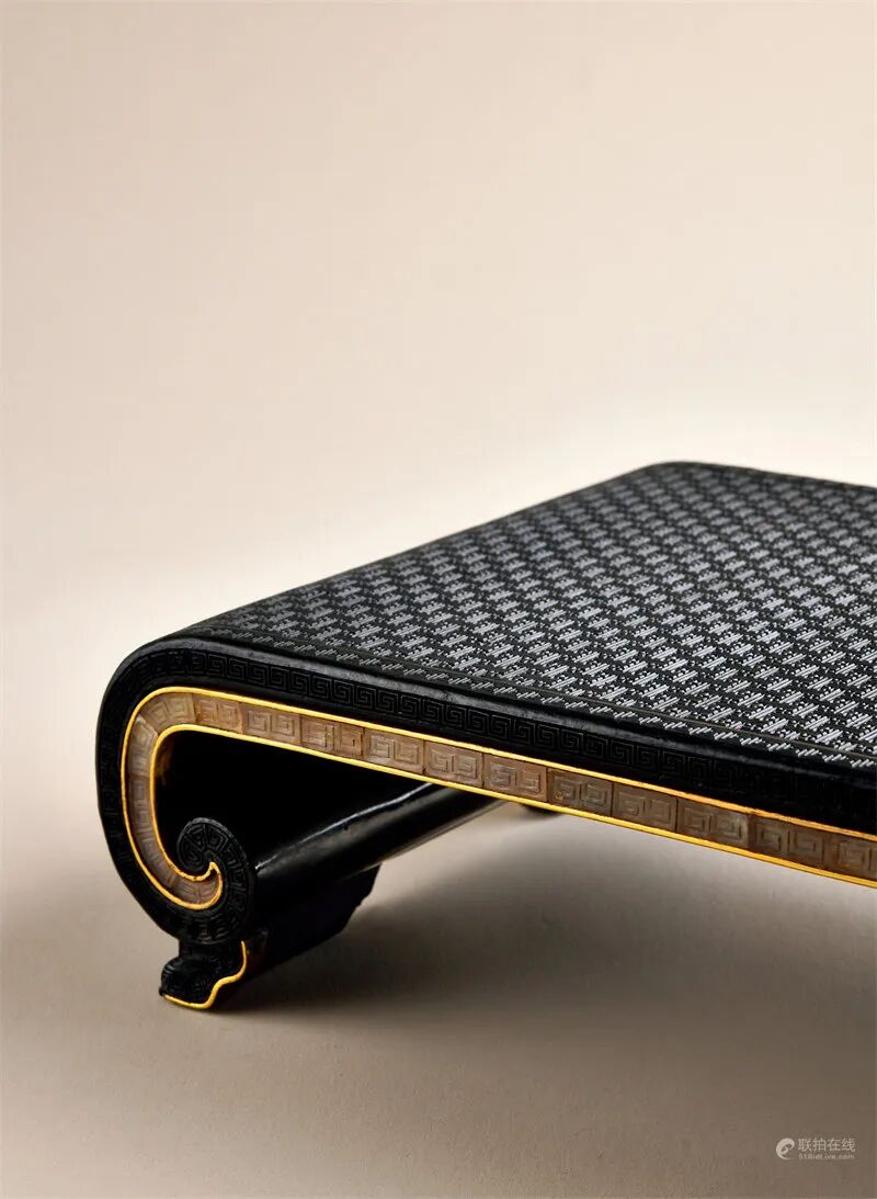 拍品估价:600,000 - 900,000 人民币乾隆皇帝非常喜爱雕漆制品,但传世的乾隆朝雕漆器物中,以剔红为多,如本品之例精工细作的剔黑器极为少见。其时国力强胜,促使宫廷内外剔红等雕漆制品生产空前繁荣,本品即为此时之代表,更显拍品之珍贵难得。全器形制经典,施漆纯正,雕剔下刀有力利落,纤细自如,在规矩的案几上上工整有致地剔出锦纹,并以白玉、铜鎏金嵌饰,漆玉相配,更是在皇家御用的尊贵奢华之外增添了文人高士的风雅之情,难得一见,可宝可藏。