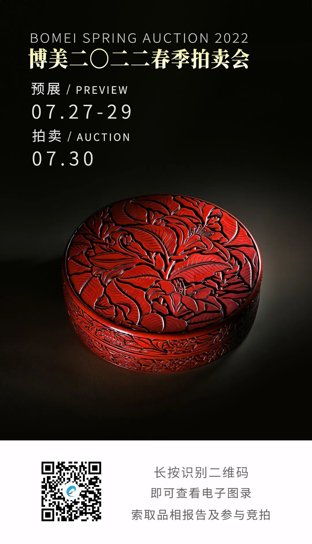 此次春季大拍,博美甄选两百余件艺术珍品,通过「乾坤髹饰-古代漆器专场」、「尚古存珍-古董珍玩专场」、「百代凝光-亚洲名藏重要中国瓷器」三大专场的形式进行呈现。联拍在线将全程直播,并提供实时同步竞拍技术和服务支持。