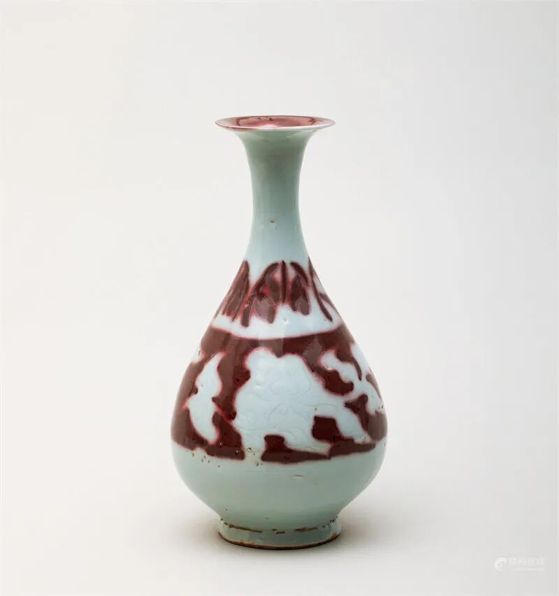 尺寸:高28cm;顶部直径7.9cm;宽 14.5cm;底部直径8.4cm拍品估价:300,000 - 600,000 人民币瓶式圆口外折,细束颈稍长,垂腹,圈足。修足爽利,露胎细实,胎表呈火石红色。其内外壁罩施白釉,质地细糯,色白而微青,光泽明润。器身以线刻技法装饰折枝莲花,刀法豪迈畅快,不拘小节。而此瓶瓶口、器腹皆用釉里红装饰,其技法特殊,填画釉里红平实厚润,色泽深浓郁丽,如施红釉为地,与留白莲纹映衬,效果鲜明强烈。