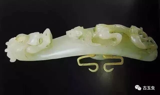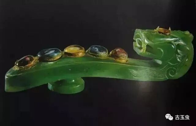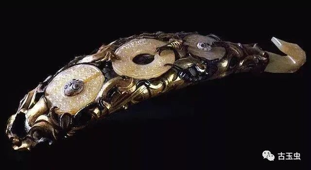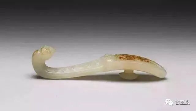 战国时期,胡人骑士为扣紧腰带、钩挂弯刀或水袋等小型器具的蹀躞(dié xiè )带传入内地,因材质多为玉制,故称“玉带勾”,类似于现代的腰带扣。