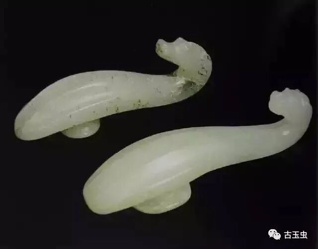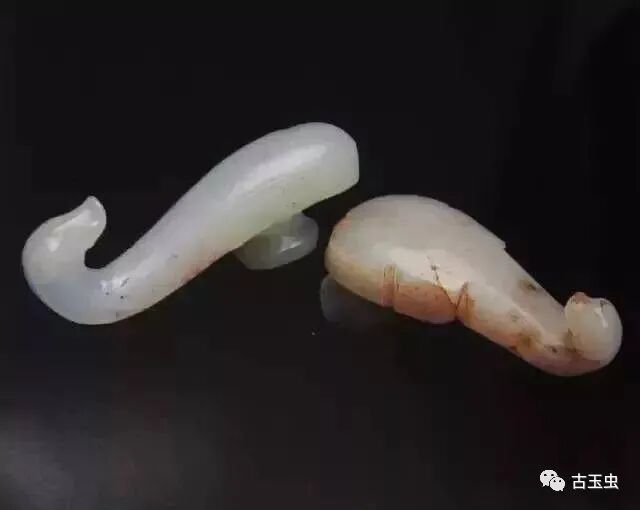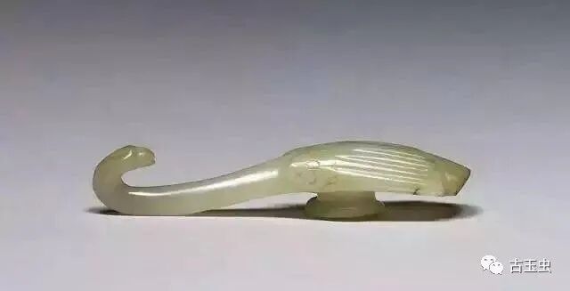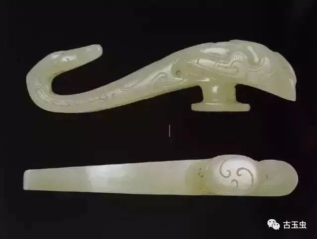形制多为长条形和饰有几何纹饰的琵琶形,小的玉带钩长只有4~5厘米,均以优质和田玉制成,显得凝重精巧。