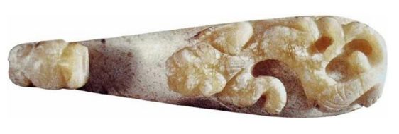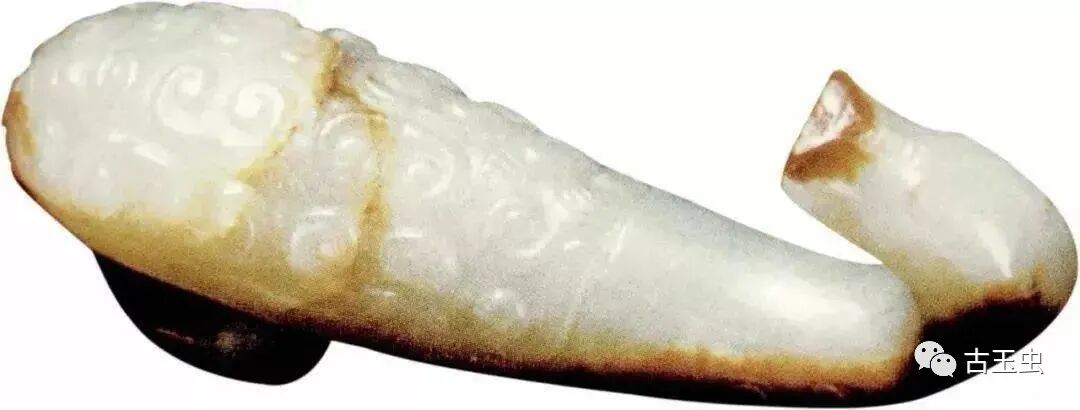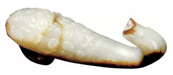 战国时期玉带钩形制确立,即钩首、钩身、钩钮组合完整。