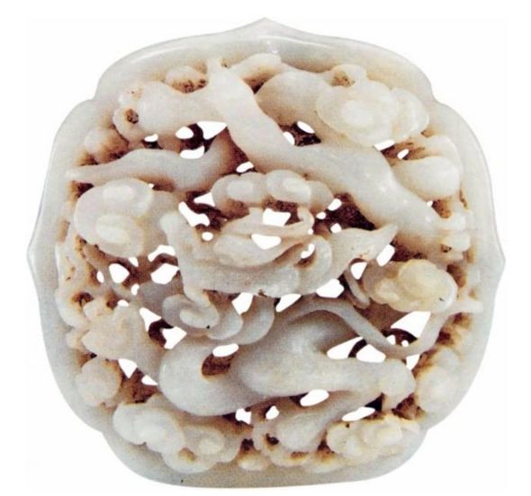 明代青白玉镂空雕云龙纹带銙 明梁庄王墓出土