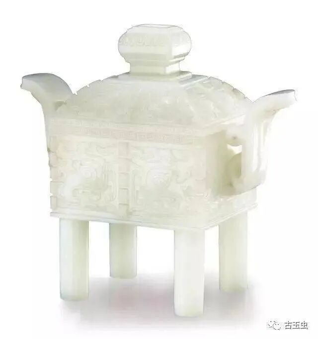 白玉仿古饕餮紋方鼎式蓋爐( 乾隆)