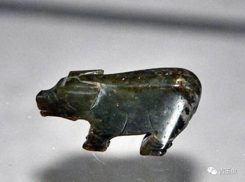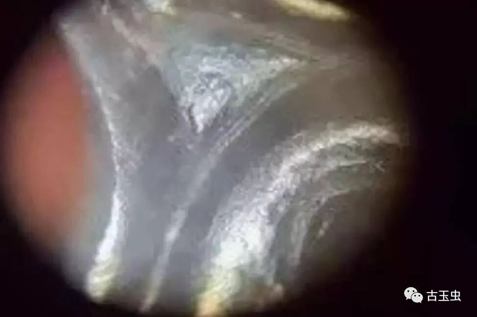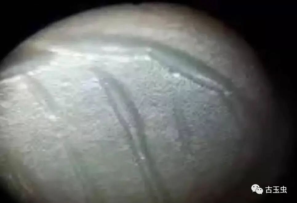 真品古玉的阴刻线都比较浅,从红山文化的大剖面弧度减地打磨技术到晚清民国较高转速砣机,在整个时间轴范围内古玉的阴刻线都比较浅,尤其是相对于现代电动工具制作的仿品比较,浅的特征更加明显。关注公众号:古玉虫。这是由于古代砣具治玉,是靠砣具碾压解玉砂滑动,逐步磨削出阴刻线,整个阴刻线基本都是浅U形或者是比较大弧度的浅V形,由于砂的游离和砣具的磨损,不可能形成深而且边缘陡峭的阴刻线条。比较深而且陡峭的线条的形成是因为电动工具转速非常高,磨削力大,进给力大,才能形成深且陡峭的阴刻线。接下来以一组图片进行演示如下: