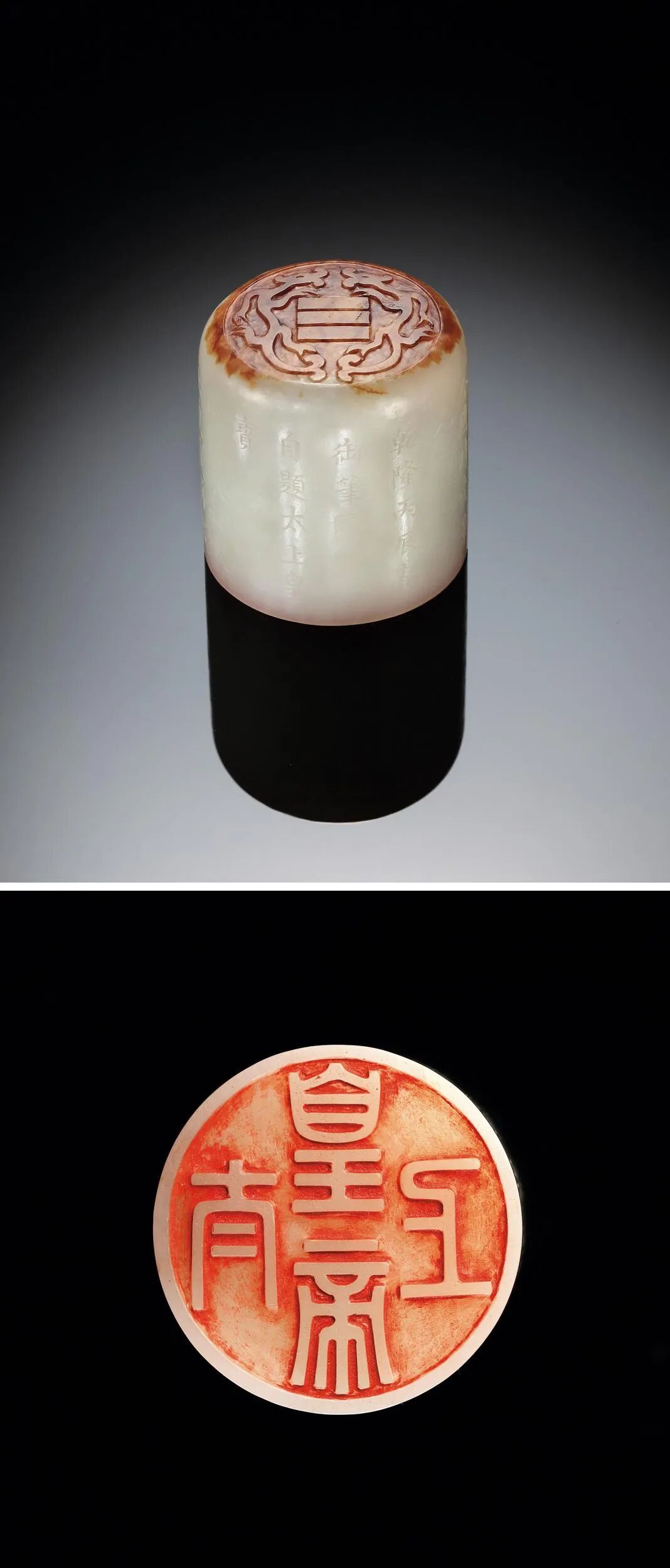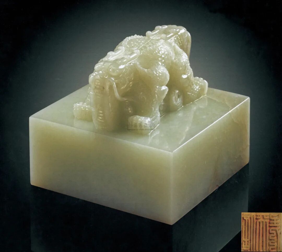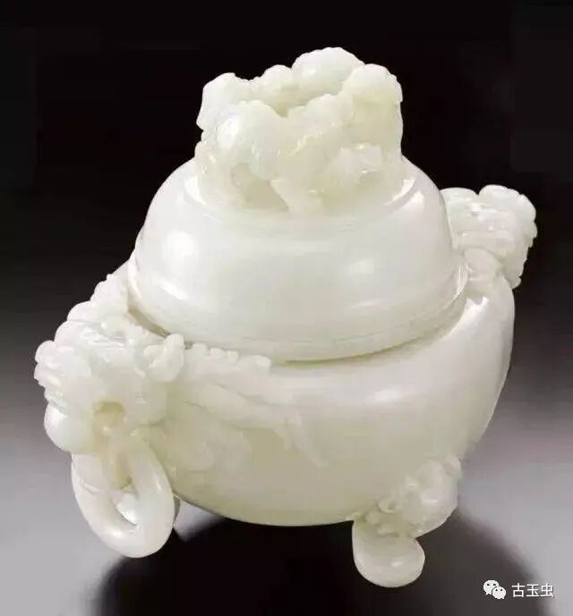 御製白玉雕三獅鈕龍首活環耳三足香爐(乾隆)