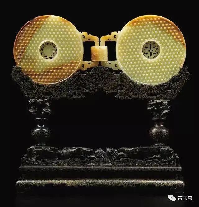 黃玉仿古乳丁紋雙聯璧(乾隆)