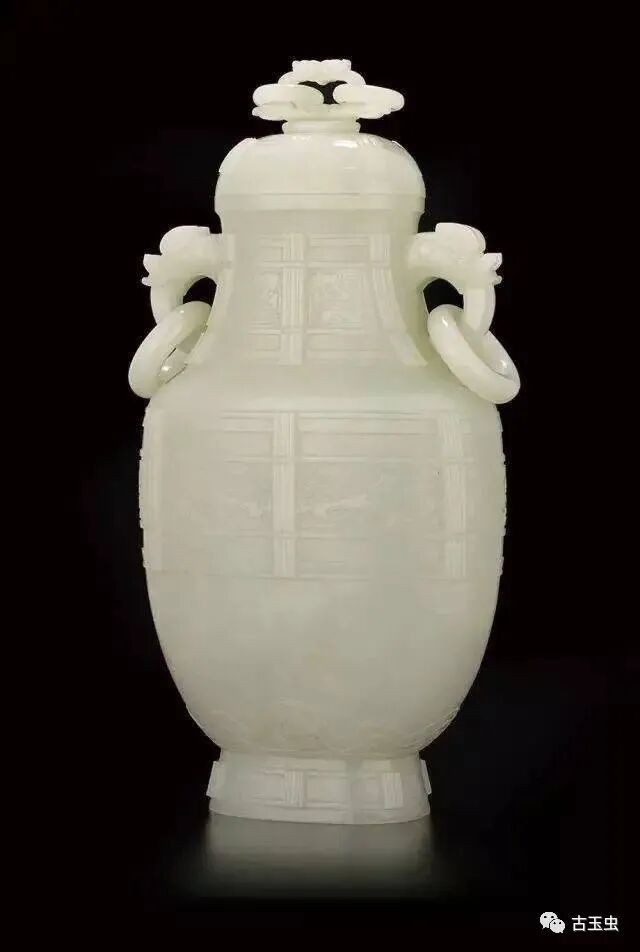 青玉仿古雙耳活環蓋瓶( 乾隆)