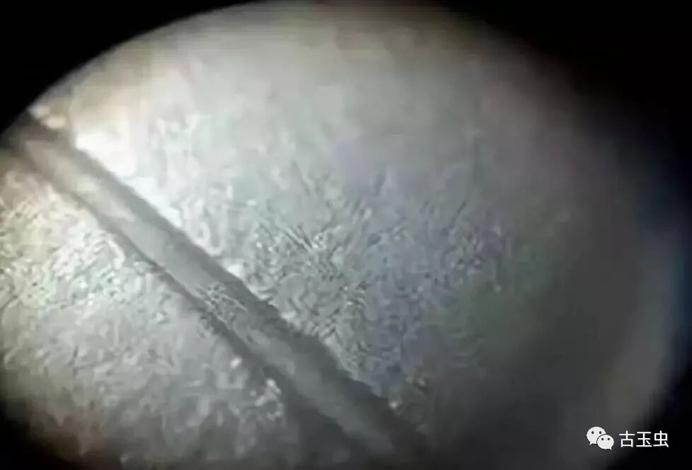 古玉的光气鉴定,十分重要。学会区别解玉砂形成的光泽与现代机器抛光,是我们进行古玉鉴定的重要技能。当我们具备了这个功夫,便能远远地通过看玉表,一眼断真伪。这就像亲妈看自己的孩子,不需要研究眼睛鼻子耳朵,只需一眼,就能认出来。