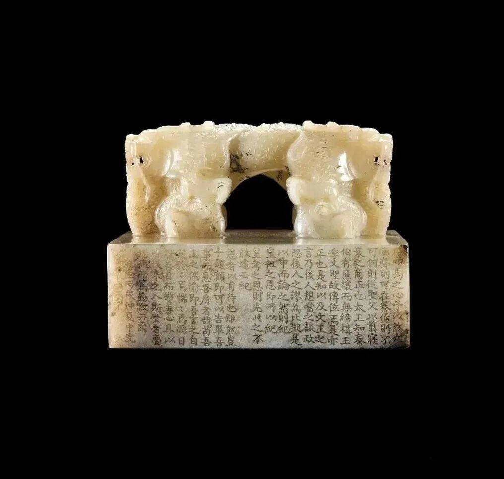 白玉御製贊阿必達尊者山子 《寅》、《大清乾隆年造 》、《十六》楷書刻款(乾隆)