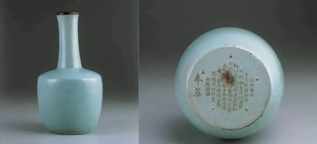 这件纸槌瓶的底部有乾隆的御制题诗,并且在诗文的左侧有奉华二字。奉华到底是什么意思?据历史记载,奉华全称应该是奉华堂,是南宋宫廷内德寿宫的一个配殿,也是高宗宠爱的刘贵妃的居所。