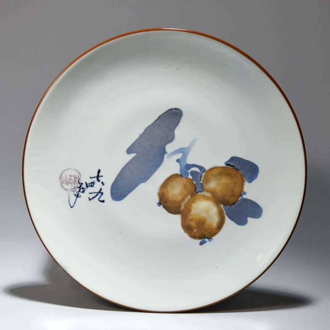 1974 年 王希怀青花釉里红枇杷图盘