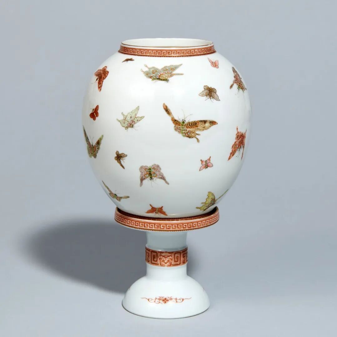 20 世纪 60 年代 刘仲卿粉彩百蝶图皮灯