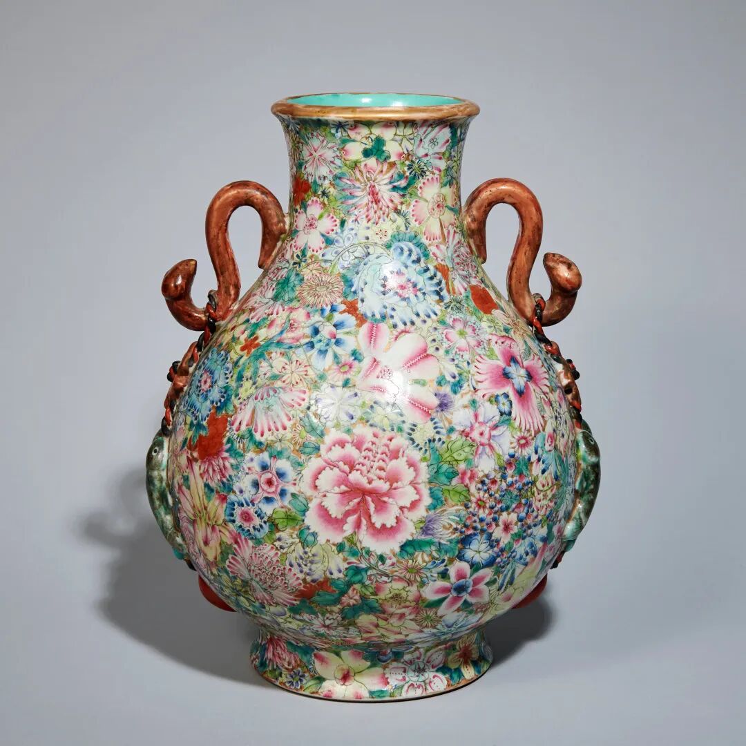 民国 粉彩百花不露地如意耳尊