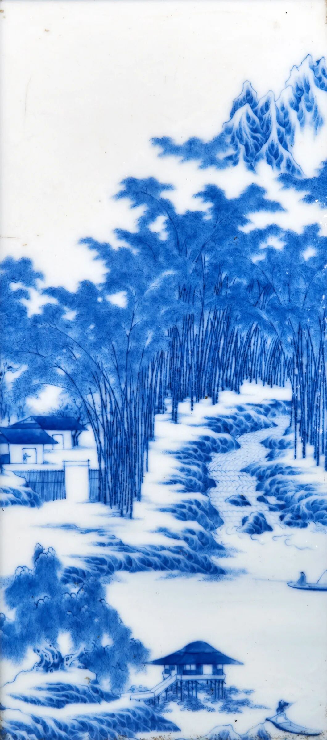 民国 王步青花竹溪幽境图瓷板