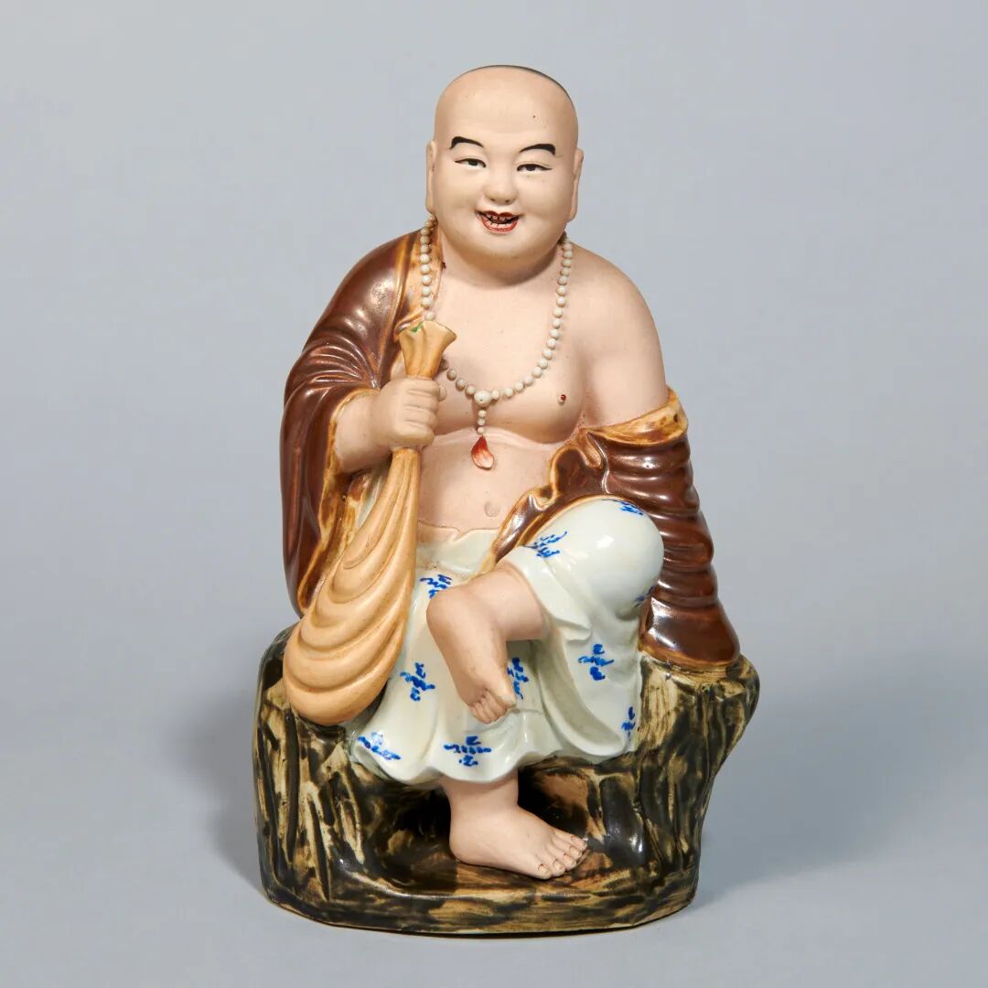 民国 曾龙升粉彩布袋和尚瓷塑
