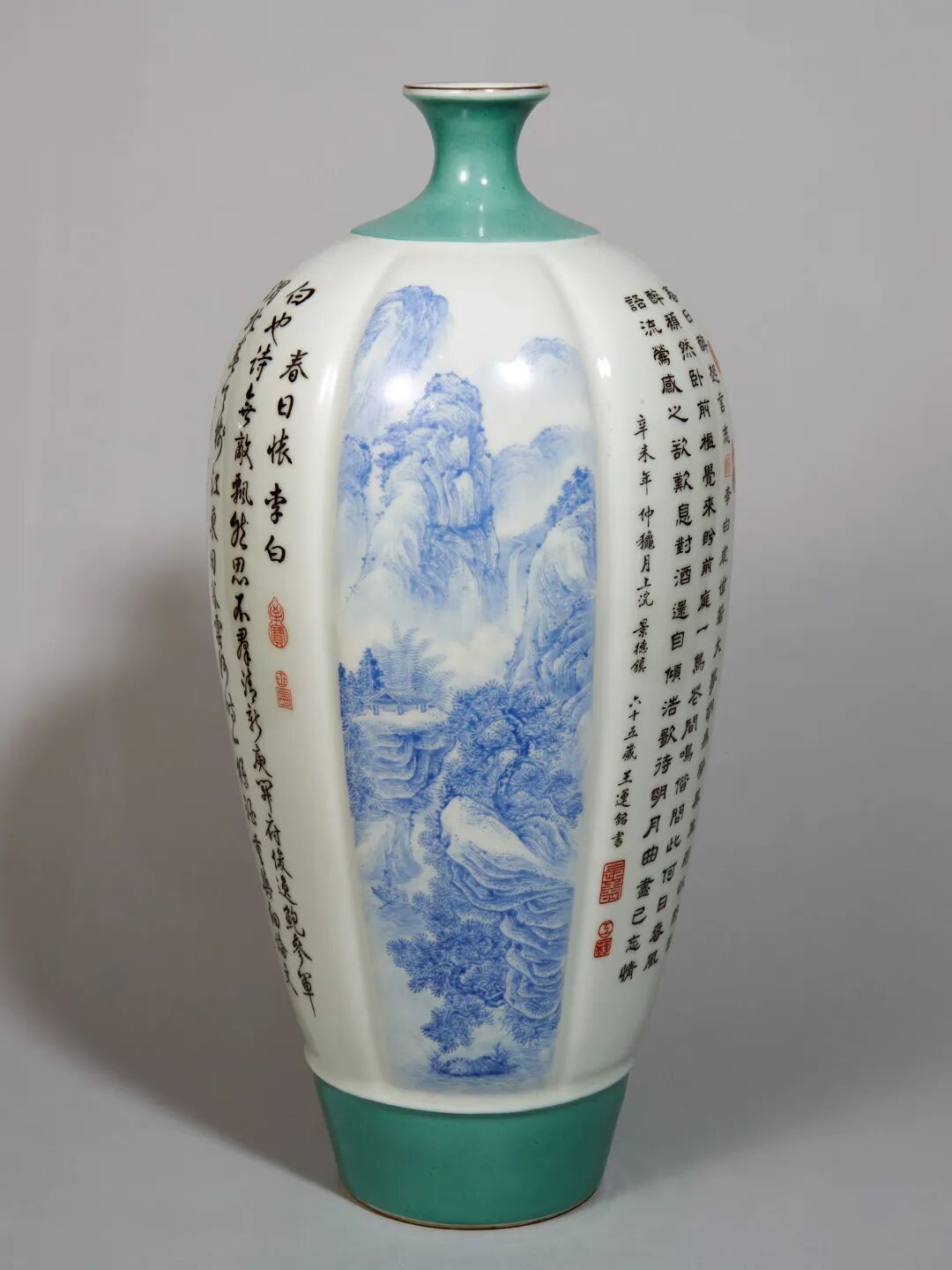 1991 年 徐焕文蓝料山水诗文梅瓶