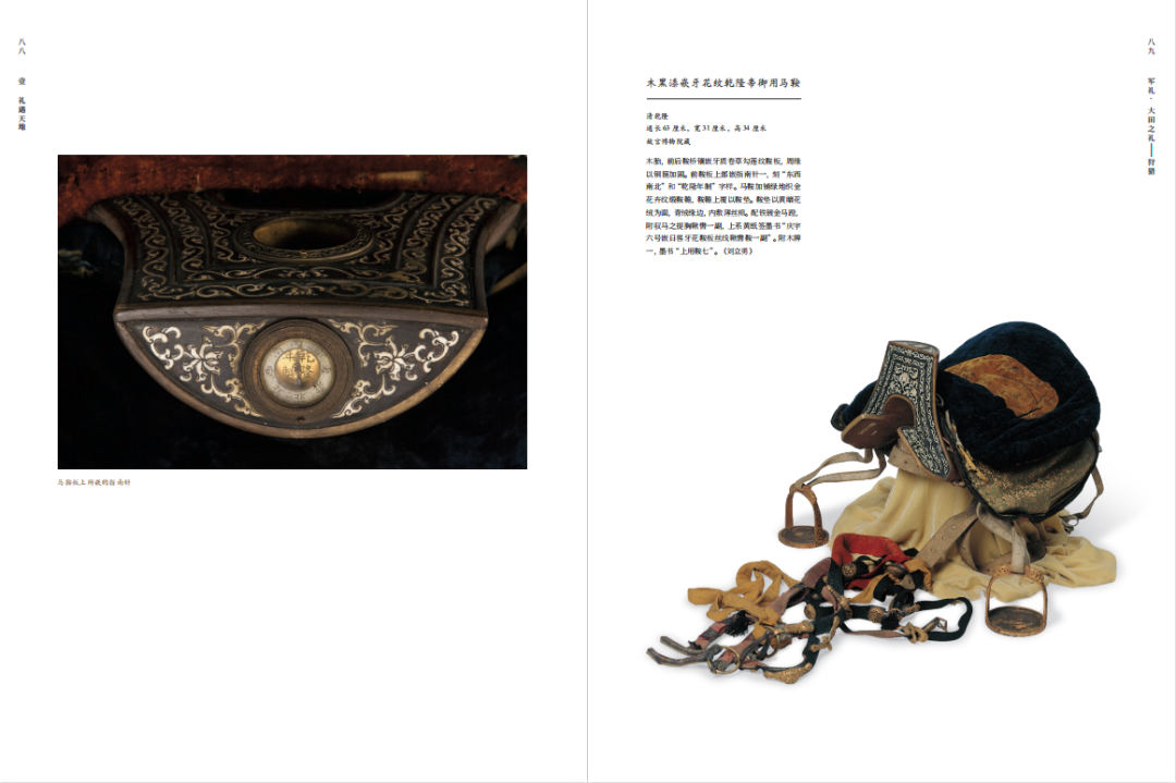 如果你对刀剑情有独钟,一定知道作为重要资料读本的《清宫武备图典》一书。而此次出版的《崇威耀德——故宫博物院藏清代武备展》,增加了在《清宫武备图典》中从未录入的展品,包括在第二单元“神锋握胜”中收入的精美的马鞍饰件、廓尔喀弯刀、俄罗斯剑、日本太刀以及清宫制作、收藏的匕首等。而且在书中提供的更多局部图片中,它们将首次展示“出鞘”细节,读者不仅可以欣赏刀身剑刃上的工艺、铭文,还对研究清宫武备提供详尽的一手资料。