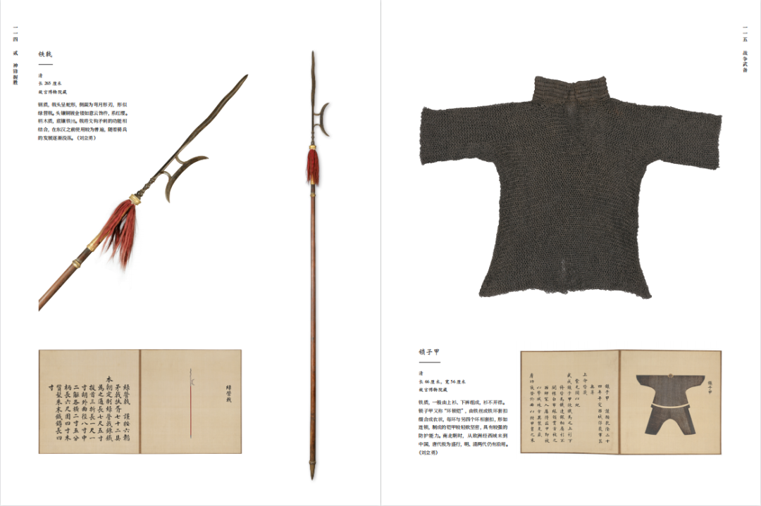 展览图录由故宫博物院和嘉德艺术中心联合编著,嘉德文库出品。书中文章与文物词条由故宫博物院多位专家撰写,并配以故宫博物院收藏的重要历史画作,将文物图、解读文字以及文献资料相互对应,为读者了解与研究武备文物及其蕴含的深刻内涵,提供详实准确的资料。