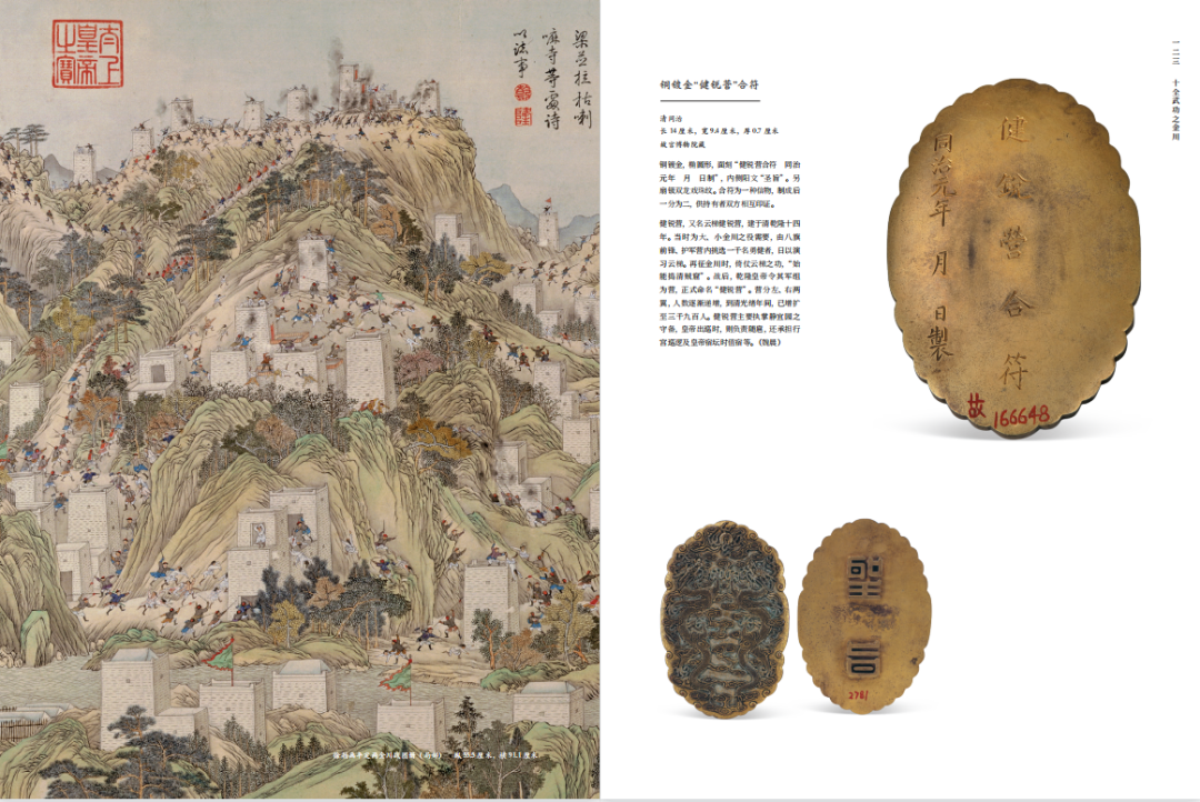 本书图版中增添不少出自故宫博物院对作品原件的最新拍摄,并经过缜密比对、校色工作。图册设计精美,印刷精良,图版展示充分,色彩还原准确,细节表现清晰。图书可完全展平,观赏作品,更有全彩高清局部画面,适合研究者细细品读个中细节。图册封面设计集合了御用刀箱、剑鞘錾刻、八旗盔甲和飞虎斧等多个元素,制作工艺上综合磨砂UV、烫金、烫钴黑、局部起鼓四道精准工序,完全依靠工艺创造出颇具质感的封面效果,既表达了对传统制造工艺的致敬,也让此书更具把玩、收藏的趣味。