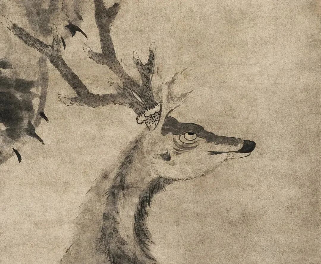 动物是八大山人擅长的题材,然写鱼、雀、鸭等均见夸张变形,只有“鹿”是从未进行过夸张和戏谑的形象,完全是本真面貌呈现,且多作于晚年。其亦有诗云:“人道难驯鹿易降”来表达他对世道的失落,将精神寄托于鹿。鹿是他坎坷人生的总结,含有似梦非梦之意,借鹿图抒情,也期待世人对他感情的理解和回应。