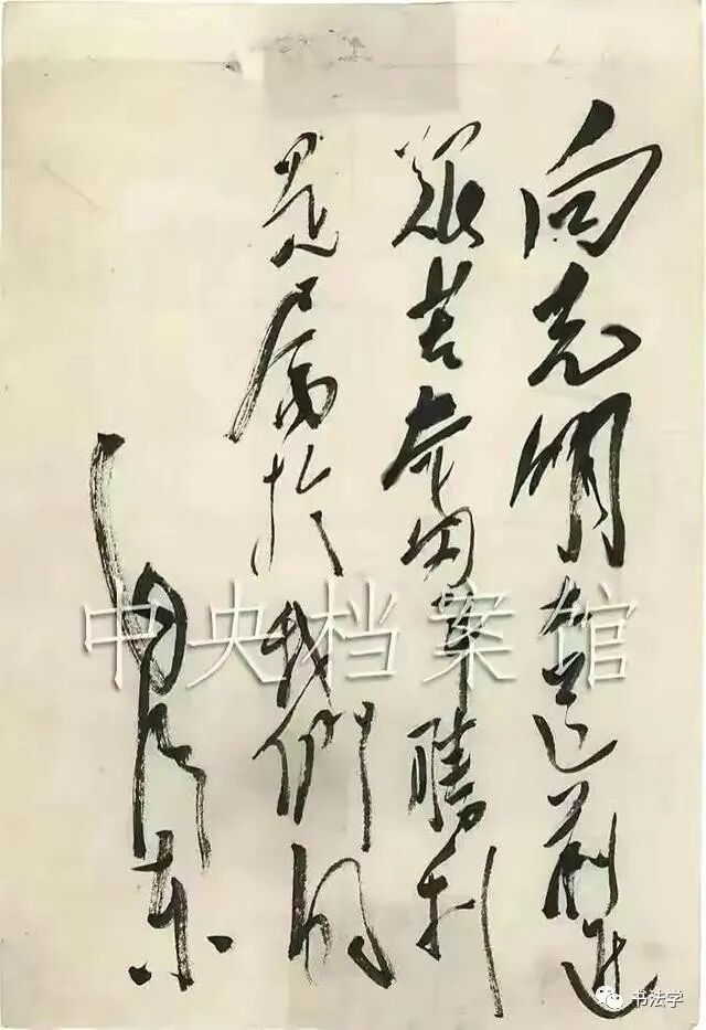 毛主席用行书书写这七个字,字的笔画张弛有度,几乎每一个笔画都是恰到好处的样子,没有像平时书写那般洒脱奔放,可见毛主席对于这件事的认真和决心,以及一种渴望蕴含其中。