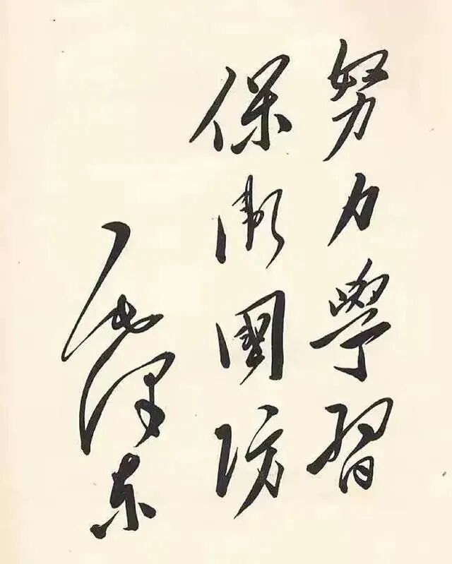 同样是书写比较霸气的内容,毛主席的这幅“提高警惕,保家卫国”书法作品,在用笔上显然较轻,其气势也不如“一定要解放台湾。”一时间高下立见,同时下边也是一些毛主席亲笔所写的书法作品,大家也可以进行一个自我比对,看看如何。