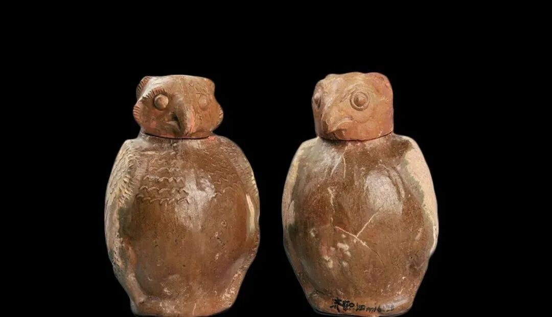 到了战国末期、秦汉时期,鸱鸮题材的艺术品又再一次出现在墓葬之中。有趣的是,这时候的鸮器大多已经成为纯丧葬用品,彻底从商代的礼器,转变成了冥器。此时的鸱鸮形器大多为陶器,可能被赋予了特别的含义。