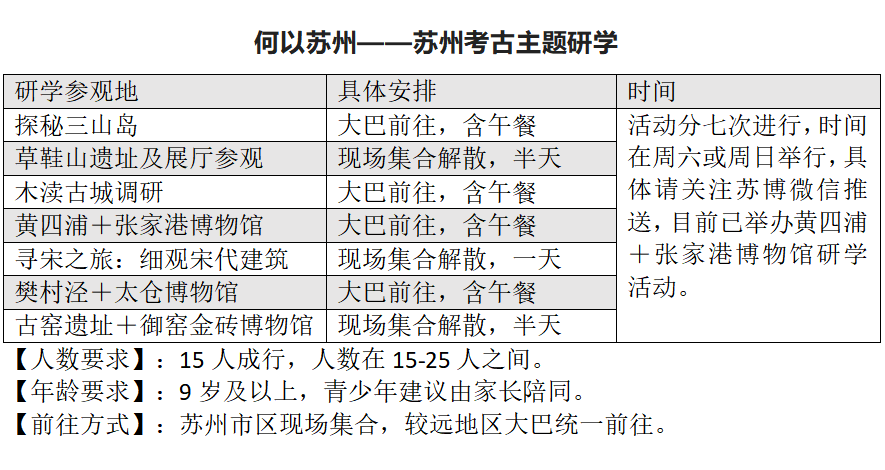 希望通过苏州考古系列研学活动(共七场),从走近苏州本地重要的考古发现和遗址现场开始,探索我们身边的苏州历史文化。