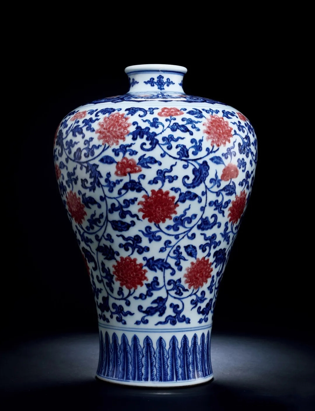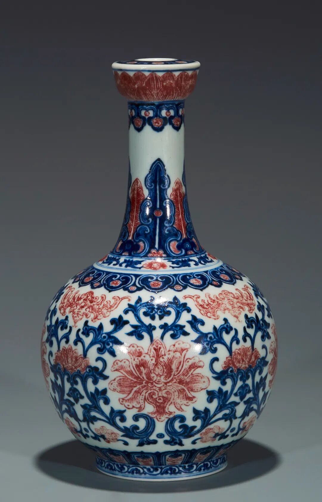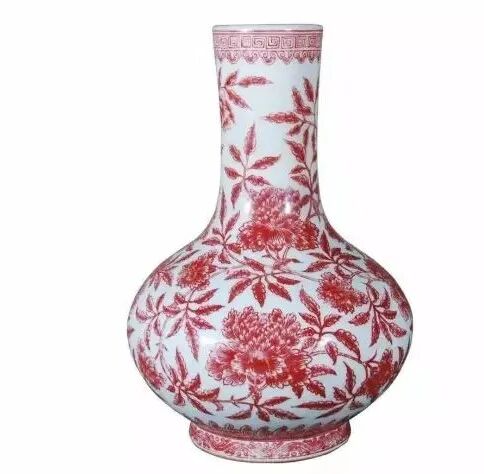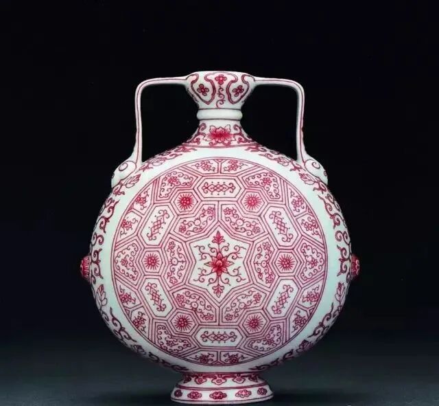 乾隆是审美格外华丽的皇帝,他在位时期的釉里红无论是呈色,还是纹饰及质量均属上乘,这时的景德镇工匠已经能够娴熟地掌握釉里红烧造的技术并能运用自如,烧制出来的釉里红瓷呈色稳定,鲜丽凝厚,纹饰清晰,并有深浅不一的多层次色阶。