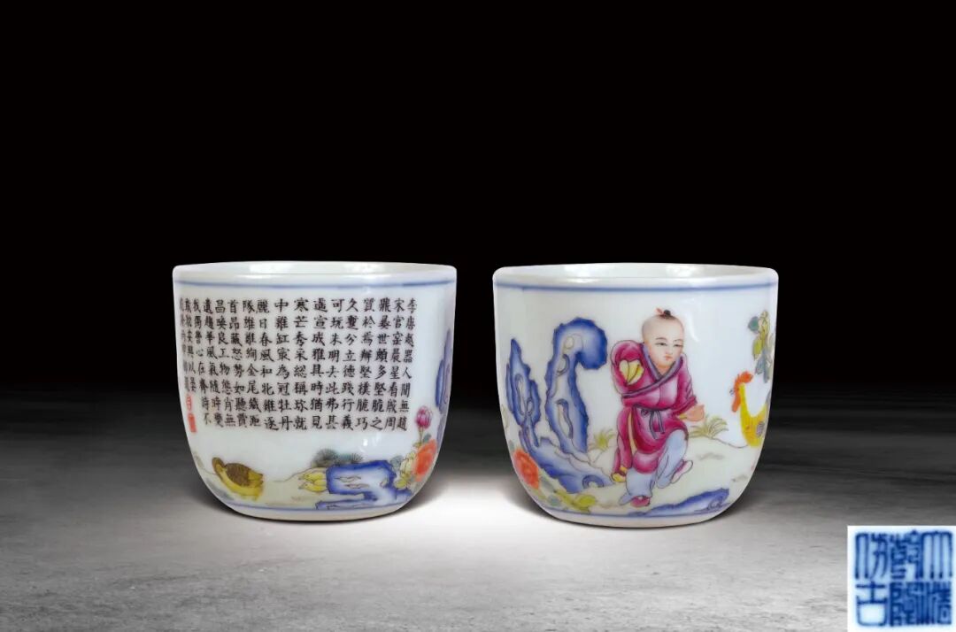 42 清 粉彩嬰戲紋杯一對