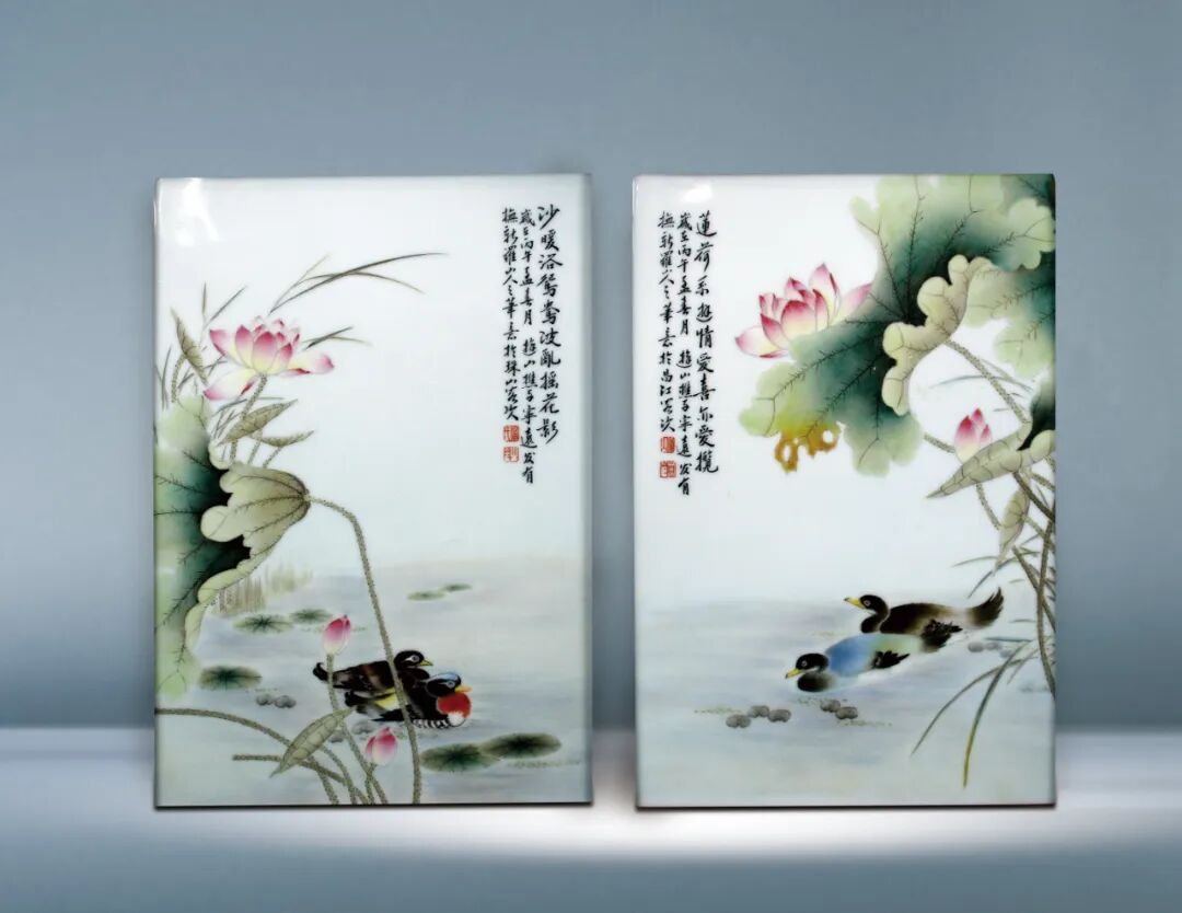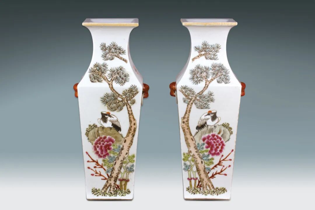 15 晚清 粉彩花鳥紋方瓶一對