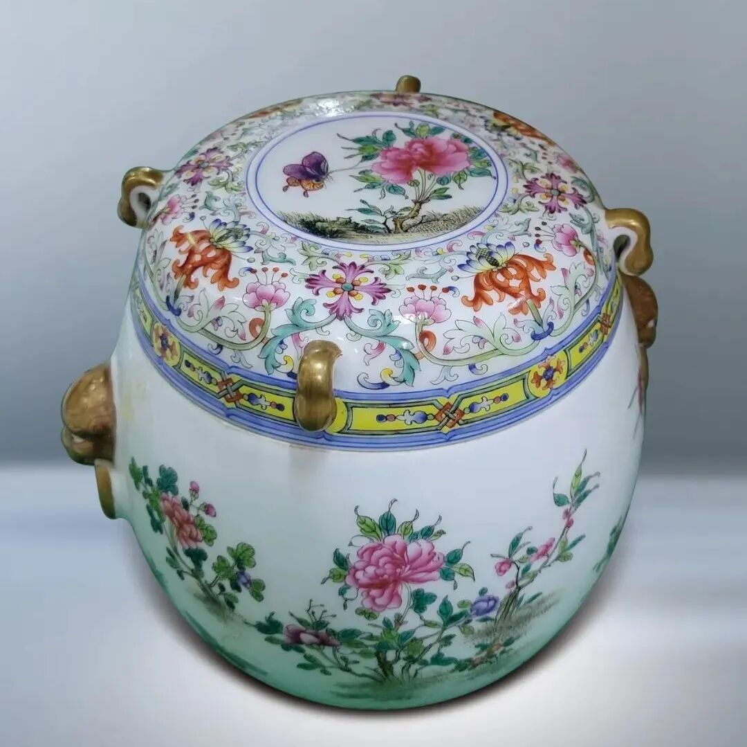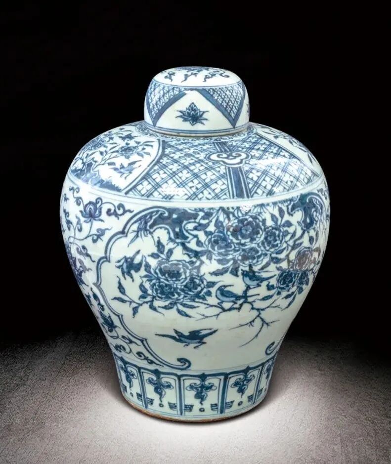 49 明中期 青花纏枝蓮開光花鳥紋蓋罐